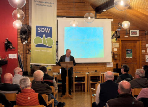Fachvortrag mit Carolin Bräuer vom Regierungspräsidium Kassel im Jugendwaldheim auf dem Hohen Meißner Mehr als 40 interessierte Teilnehmer*innen folgten der Einladung der Schutzgemeinschaft Deutscher Wald (SDW) in das Jugend- waldheim auf dem Hohen Meißner, um sich über die aktuelle Situation des Bibers in Hessen zu informieren. Begrüßt wurden sie vom stellver- tretenden SDW-Kreisvorsitzenden und Jugendwaldheimleiter Lothar Freund sowie vom SDW-Kreisvorsitzenden Uwe Brückmann. In der gemütlichen Atmosphäre des Kaminzimmers stellte Carolin Bräuer vom Bibermanagement beim RP Kassel die Rückkehr des Bibers in Hessen vor. Mit einer anschaulichen PowerPoint- Präsentation erläuterte sie, wie sich die Population in den vergangenen Jahren stetig entwickelt hat, nachdem er im 19. Jahrhundert durch Bejagung, z. B. als Fastenspeise oder zum Erhalt des begehrten Bibergeils, nahezu ausgerottet war – und welche Herausforderungen damit verbunden sind. Bräuer zeigte auf, wo es bei der Begegnung von Mensch und Biber zu Konflikten kommt: Überflutete Wiesen und landwirtschaftliche Flächen Unterspülte Bahndämme Verbiss an Bäumen Schäden an Feldfrüchten wie Mais oder Zuckerrüben Gleichzeitig stellte sie erfolgreiche Lösungsansätze aus der Praxis vor. Durch gezielte, behutsame Eingriffe an Biberdämmen konnten vielerorts Konflikte entschärft und gleichzeitig neue, wertvolle Lebensräume für zahlreiche Tierarten geschaffen werden. Diese Beispiele machten deutlich, dass ein konstruktives Miteinander möglich ist – wenn Menschen bereit sind, sich auf die Bedürfnisse der Tiere einzulassen. Im Anschluss entwickelte sich eine lebhafte und offene Diskussion. Die Teilneh- mer*innen nutzten die Gelegenheit, Fragen zu stellen und eigene Erfahrungen einzubringen. Nach rund zwei informativen Stunden bedankte sich Uwe Brückmann herzlich bei der Referentin für den gelungenen Abend und wünschte allen eine angenehme Heimreise und ein erholsames Wochenende. Ergänzende Informationen dazu unter der Internetseite des Hessischen Ministeriums für Umwelt, Klimaschutz, Landwirtschaft und Verbraucherschutz